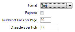 - Characters per Inch—Text format exports are based on the number of characters per inch. Use this field to specify the number of characters per inch used for an exported report.