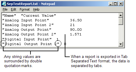 Separated Text Format differs slightly from Separated Values Format in that some formatting is preserved, and column headings are handled slightly differently in reports that are exported in Separated Text Format.