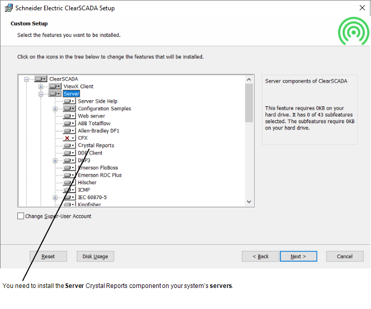 The SAP Crystal Reports runtime components are NOT installed by default. If you intend to install them you must purchase a Crystal Reports runtime license for each server on which these components are to be operational (clients do not need a license to use the runtime components). For servers on which the runtime components are operational, the Crystal Reports runtime license is included with the Geo SCADA Expert Crystal Reports driver license. Please contact your Schneider sales representative for more information.