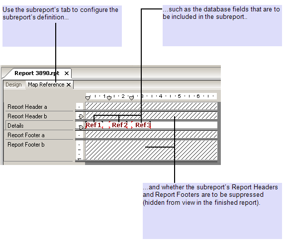 The subreport is given a suitable name—‘Map Reference’.