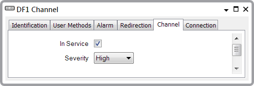 Use the fields at the top of the Channel tab to specify whether a channel is functional, and the severity of any alarms and events that are associated with the channel. For more information, see Configure the Basic Channel Properties in the Geo SCADA Expert Guide to Simple Drivers.