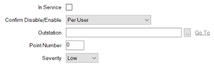 - Point Number—Applies to DNP3 Pulse (NULL) pulse actions only. Use to specify the point’s address in the outstation (see Configure General Point Properties).