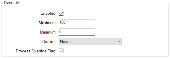Use the fields within the Override section of the Analog Point tab to specify whether a point’s value can be overridden.