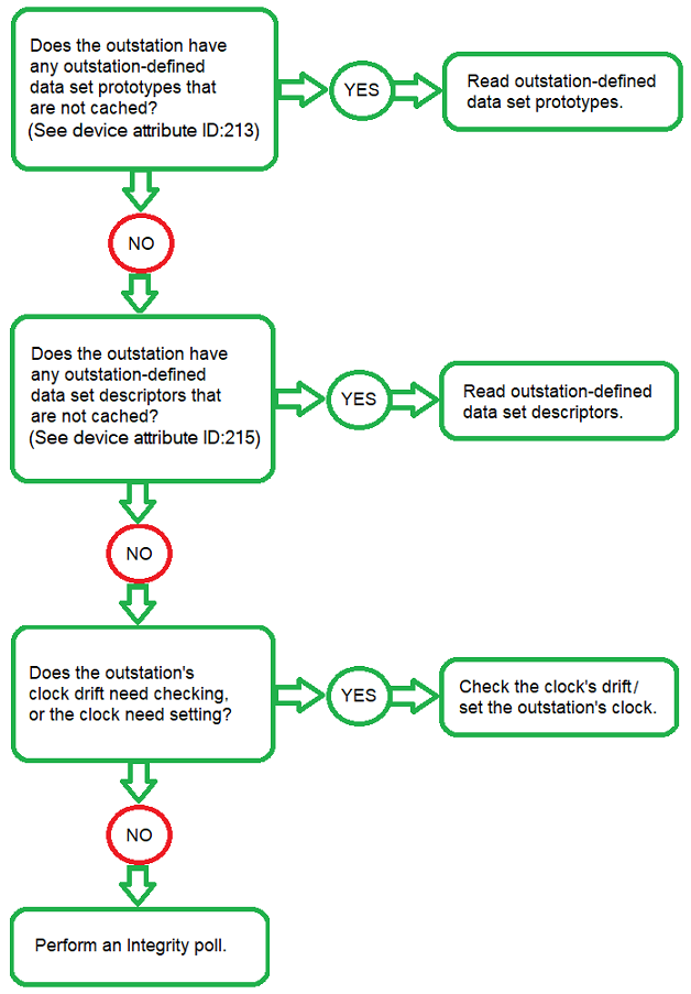 With this option selected, Geo SCADA Expert performs a Group 0 poll to read the device attributes whenever it establishes or reestablishes communications with the outstation.