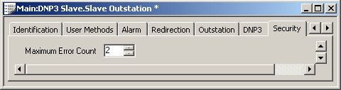 Use the Maximum Error Count spin box on the Security tab to specify the maximum number of authentication errors that the Slave outstation is to generate: