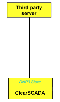The diagram below shows a third party server acting as a DNP3 master to Geo SCADA Expert: