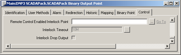 For each DNP3 SCADAPack Output point that is controlled exclusively by another application, rather than Geo SCADA Expert, you need to disable that point’s Control aggregate. For such points, fields on the Control tab are unavailable for use and you can ignore the rest of this section.