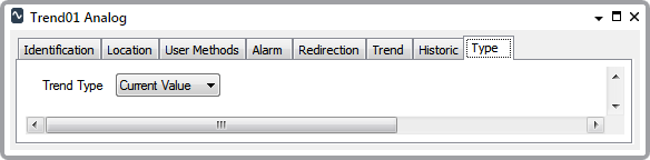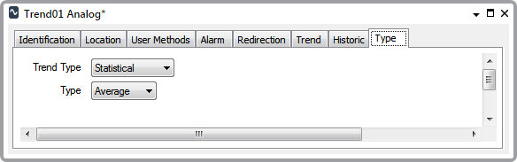 The fields and options on the Type tab vary, depending on the point on which the outstation is to sample data. Ensure that you Configure the Basic Trend Properties on the Trend tab before configuring the properties on the Type tab.