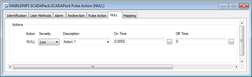 For further information, see Configure a NULL Pulse Action in the Geo SCADA Expert Guide to the DNP3 Driver.