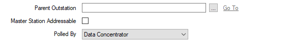Use the Polled by combo box on the Remote DNP3 Device tab to specify which device(s) are to scan (poll) this remote outstation. The options that are available depend on whether the Master Station Addressable check box is selected (see Specify Whether Geo SCADA Expert can Address a Remote Outstation Directly). Be aware that the association of a point with a DNP3 SCADAPack E outstation differs in the Geo SCADA Expert database, depending on whether that point is scanned by Geo SCADA Expert or a data concentrator (see With Which Database Item do I Associate each DNP3 SCADAPack Point?).