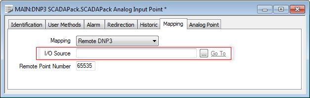 Use the I/O Source field on the Mapping tab to specify the expansion I/O module, card or device on which a point is located.
