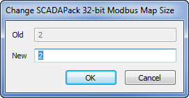 The Change SCADAPack 32-but Modbus Map Size window is displayed.
