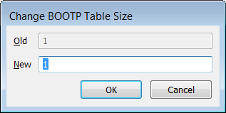 4. Enter the new table size in the New field.