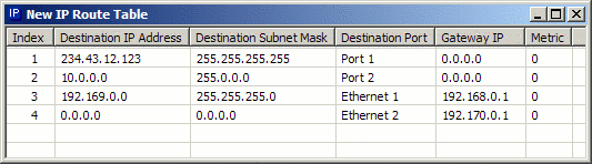 In order for the outstation to route TCP/IP packets to the required TCP/IP hosts, an IP Route Table is configured. For the network shown above, the table has these settings: