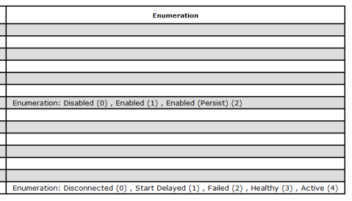 - Enumeration—The Enumeration entries provide additional information about the type of value to which a field can be set.