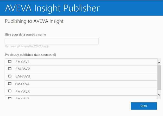 8. In the Give your data source a name field, enter a unique name for the data source that you want to create for your AVEVA Historic Data Export item.