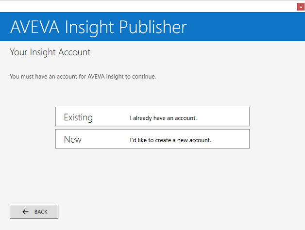 5. You will be given the option of either using your existing Insight account to publish data, or creating a new Insight account for the user that is to publish (export) data to AVEVA Insight.