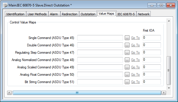 Leave the fields blank for any Control Value Map types that are not used by this slave outstation.