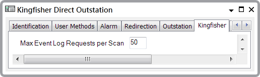You use the Max Event Log Requests per Scan field on the Kingfisher tab to specify the maximum number of requests that Geo SCADA Expert should make for Event Log data in a single scan, before it allows other requests.