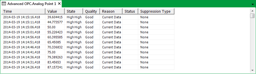 For points and accumulators for which Geo SCADA Expert does store data historically, you can display that data as a Historic List, or a Historic Trend. (For information on Historic Trends, see the Geo SCADA Expert Guide to Trends.)
