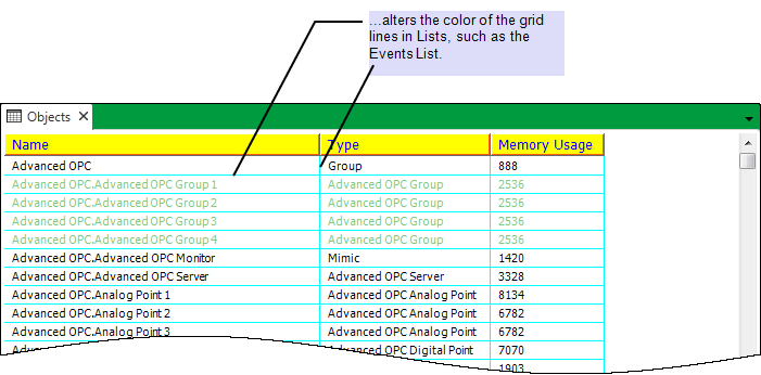 Use the Grid Lines section on the Option window’s Lists tab to specify these properties: