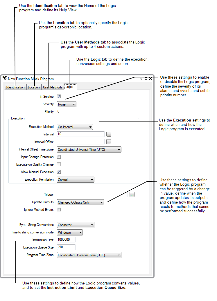 10. Use the execution-related settings to define when and how the Logic program can be executed (see Define the Execution Settings for a Logic Program):