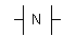 Negative sensing coil. This output acts as a pulse. When the input from the left rail changes from 1 to 0, the coil outputs a 1 value. When the next rung of the Ladder Diagram is executed, the positive sensing coil reverts to having a 0 output. |