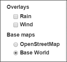 Note that the menu is divided into sections: there is a section for base map layers and a section for overlays.