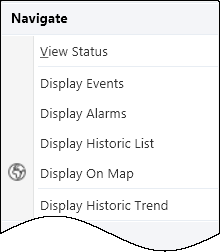 Geo SCADA Expert displays the item on the Default Map.NOTE: You may also be able to use the Display On Map Object menu option from a Mimic item or a List item. This will depend on the type of the item and if it has been configured to show the option on its Object menu (see Display the Object Menu in ViewX in the Geo SCADA Expert Guide to ViewX and Virtual ViewX Clients).