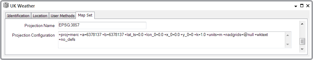 - Projection Name—Enter the name of the projected coordinate system that you want to use for the Map Sources in this Map Set (for more about Map Sources, see Creating a Map Source).