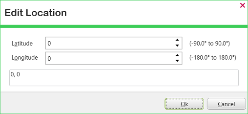 You can also enter the coordinates by selecting the browse button to the right of the Position field. If you do this, Geo SCADA Expert will display the Edit Location dialog box.