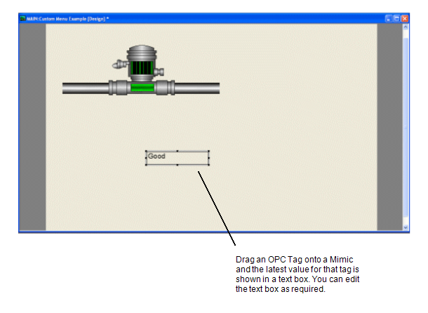 - Displaying the OPC Data Bar, expanding the OPC property tags for the required item, then dragging the OPC tag you want to display onto the Mimic (see Working with the OPC Data Bar in the Geo SCADA Expert Guide to Core Configuration).