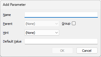 • Group—Use this check box to define whether a parameter is a 'group' parameter or an individual parameter. Group parameters can contain other parameters and are designed to enable you to animate several parameters at once.