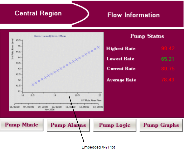 You can embed X-Y Plots on your Mimics. Embedded X-Y Plots update in the same way as X-Y Plots that are stored as database items and provide similar advantages to embedded Mimics:
