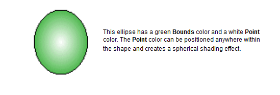 - Radial Gradient—The Radial Gradient option applies an 'spherical' shading effect. Like the other Gradient types of shading, the Radial Gradient uses two colors—a Point color and a Bounds color.