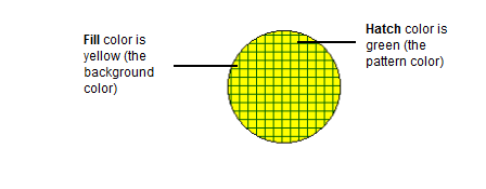 - Hatch—The fill color is a hatch pattern. The pattern consists of two colors that you can select in the Colors section. You can also change the style of hatch pattern by using the Pattern combo box in the Fill section.