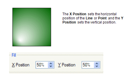 - X Position and Y Position—The X Position and Y Position spin-boxes are available for the Radial Gradient shading effects and some Pipe Gradient shading effects. You can use these spin-boxes to define the vertical and horizontal position of the Line or Point color (as appropriate).