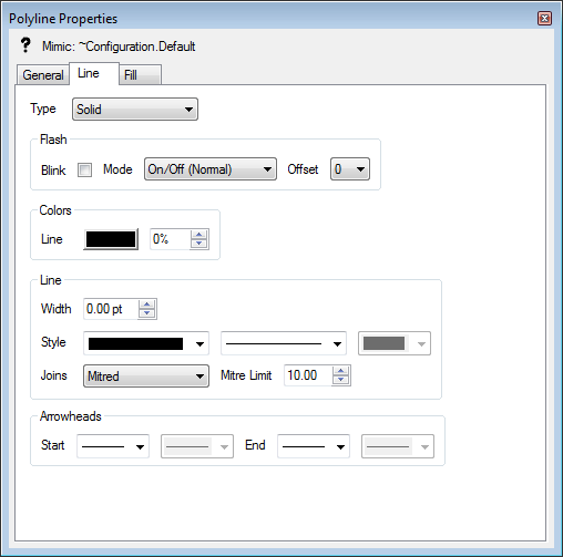 The Line tab contains the settings you need to define the appearance of lines and outlines (the lines around shapes).