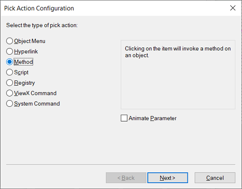 The engineer then reconfigures the 4 custom menu options so that they have the Animate Parameter setting selected (enabled). This allows each custom menu to use a parameter as an animation property.
