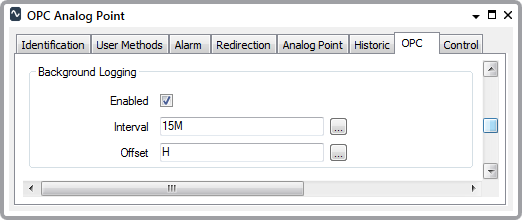 Enter the required Interval in the OPC Time Format, for example 15M for Geo SCADA Expert to store the point’s value historically at 15-minute intervals.