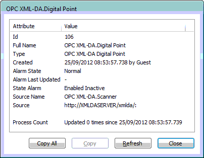 OPC XML-DA Specific Status Display Attributes
