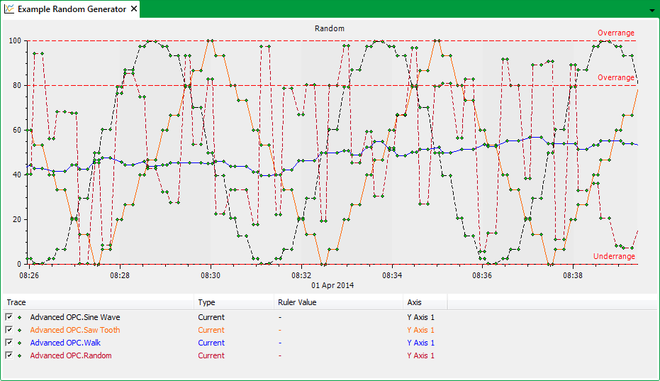 The Random Generator provided as a part of Geo SCADA Expert is a signal generator that produces simulated data for testing and demonstration purposes.