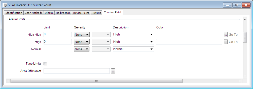 For information on the Tune Limits property, see Define Whether a Counter Type Point's Limits can be Tuned in the Geo SCADA Expert Guide to Core Point Configuration.