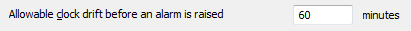 Use the Allowable clock drift before an alarm is raised field to specify the amount of time by which a controller’s clock can differ from the server time before Geo SCADA Expert raises an alarm. The field appears in the SCADAPack Modbus section of the Geo SCADA Expert Server Configuration tool.