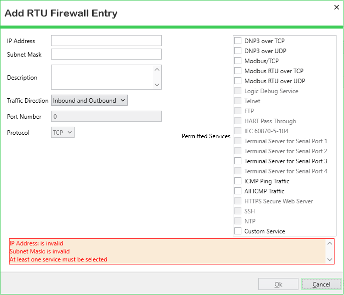 If you are to add or edit an IP Address, you have to enable the RTU Firewall.