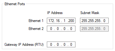 Use the Gateway IP Address field(s) to configure the IP address(es) of the default gateway node through which IP communications pass if no other path can be determined for an IP address.