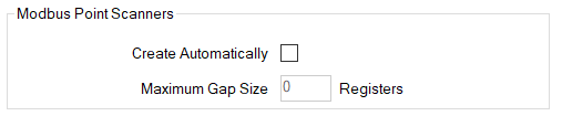 When creating Modbus scanners automatically, the gaps (if any) between mapped Modbus registers are considered along with the Maximum Gap Size when determining the block of registers for each scanner.