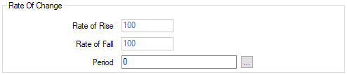 The Rate of Rise and Rate of Fall fields are 'grayed out' and unavailable for use if the Period is set to 0. Such a time period disables the feature and indicates that rate of change detection is not to be performed.