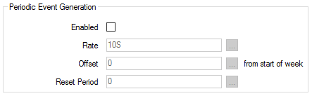- Offset—Use to specify the start time for periodic event generation, as an offset from the start of the week (00:00:00 UTC Monday morning). Enter the required interval in the OPC Time Format. You can enter the value directly in the field, or use the Interval window (accessed via the field's browse button) to specify the required value.