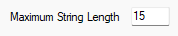 - Maximum String Length—Specify the maximum acceptable string length for the item's current value. The range is 15 to 254 characters inclusive. The default is 15 characters. The setting is inherited by any SCADAPack x70 protocol-specific String Point that is associated with this Configuration item.